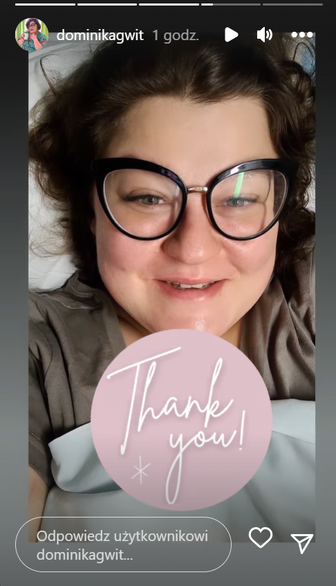 Dominika Gwit opublikowała też krótki filmik, na którym jest niezwykle wzruszona. Informuje, że poród przebiegł pomyślnie, a ona i maleństwo czują się dobrze. Podziękowała też swoim fanom za ogrom wsparcia, gratulacji i ciepłych słów, jakie dostawała od momentu, kiedy ogłosiła, że po wielu latach starań ona i jej mąż Wojciech Dunaszewski zostaną rodzicami.